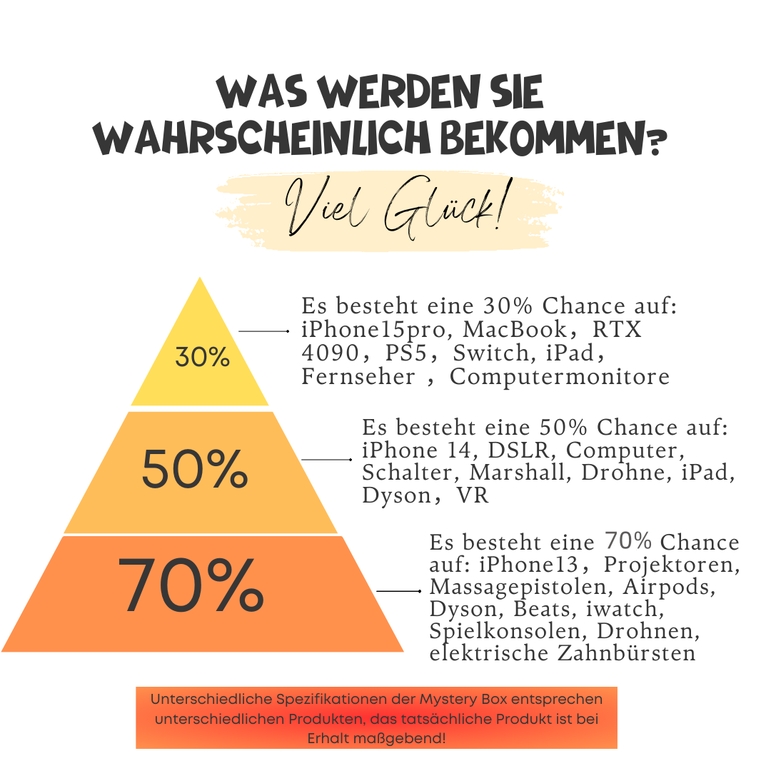 Unsere "Mystery Box" enthält eine Vielzahl von Produkten mit unterschiedlichem Wert - von Computern, Mobiltelefonen, PS5 bis hin zu Kopfhörern, Bluetooth-Lautsprechern und so weiter.